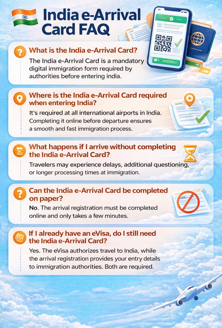 The India e-Arrival Card is a mandatory travel requirement for all passengers entering the country.